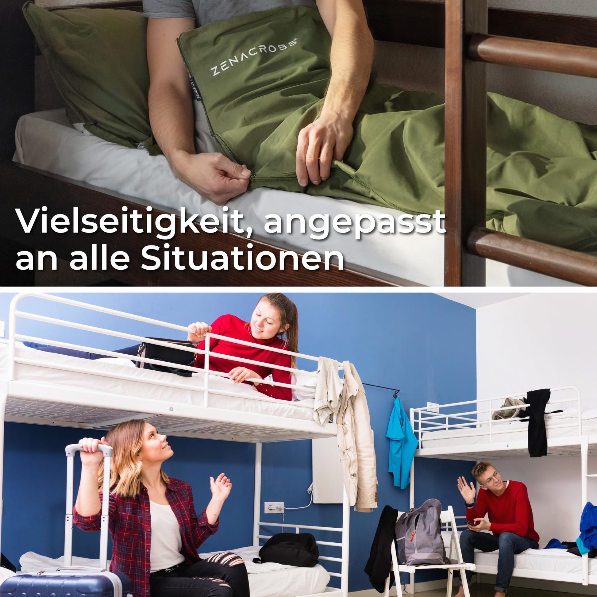 Zenacross - Cotton Sleeping Bag Liner - Ultralight Travel Sheet - Compact Sleeping Bag Liner with Pillow Pocket - Small & Lightweight - Khaki