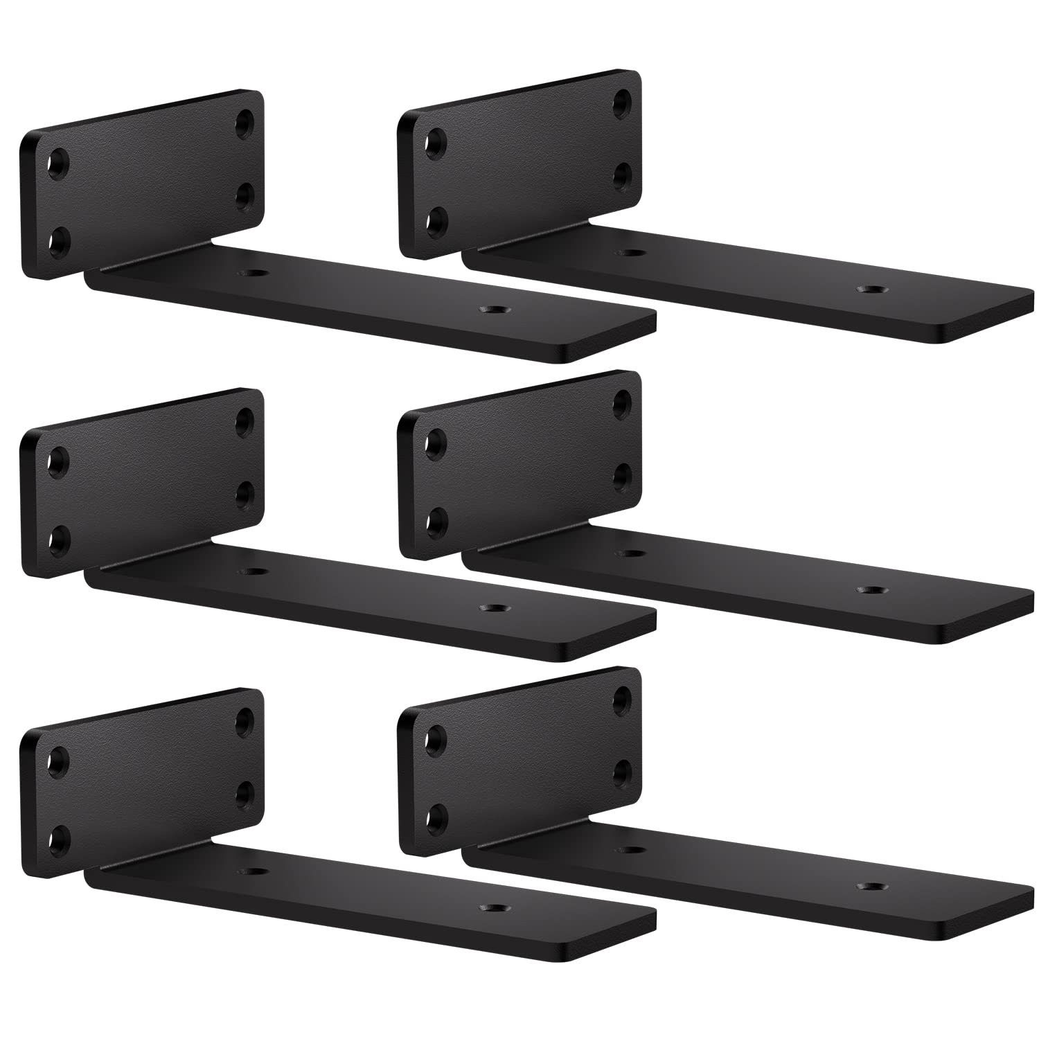 zhongko Shelf Bracket 6Pcs Heavy Duty Angle 6 Inch for Wood Plank Shelf Brackets Black Heavy Duty Metal L Shelf Bracket for Wall Mounted (Black, 6in-6pcs)