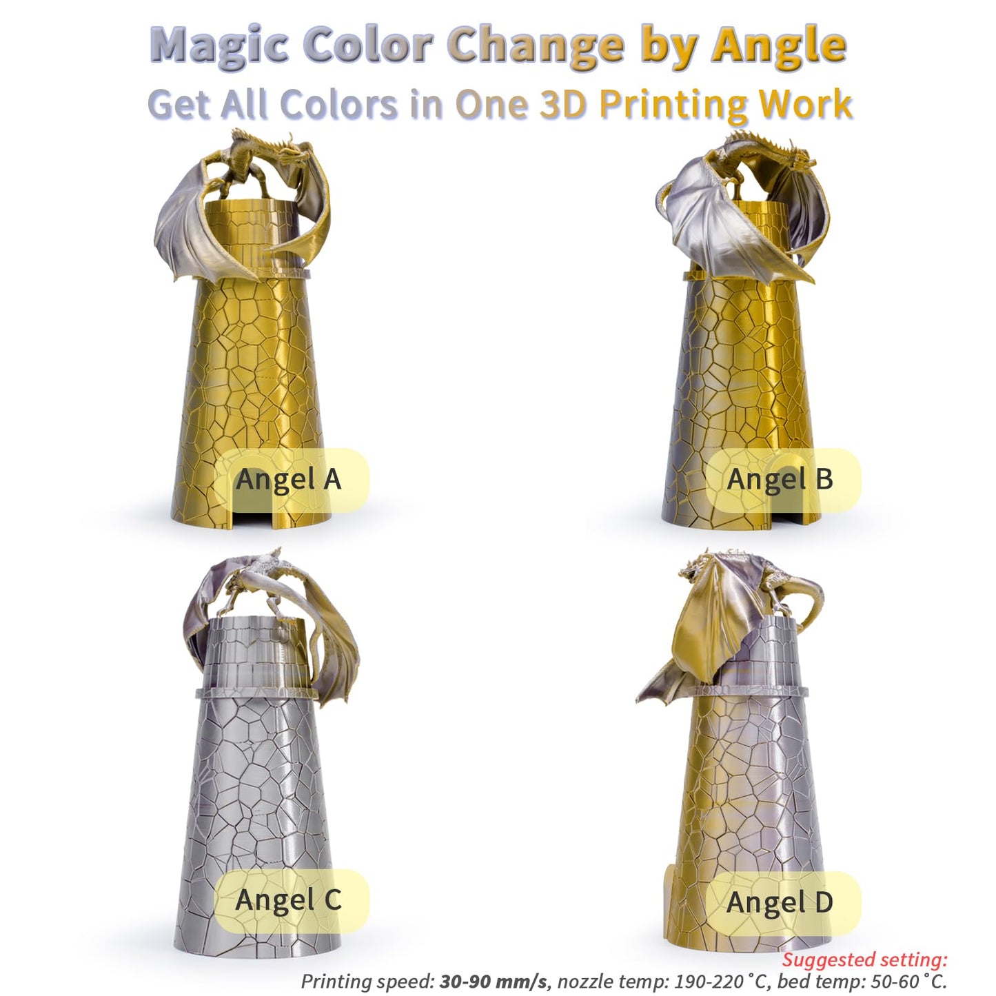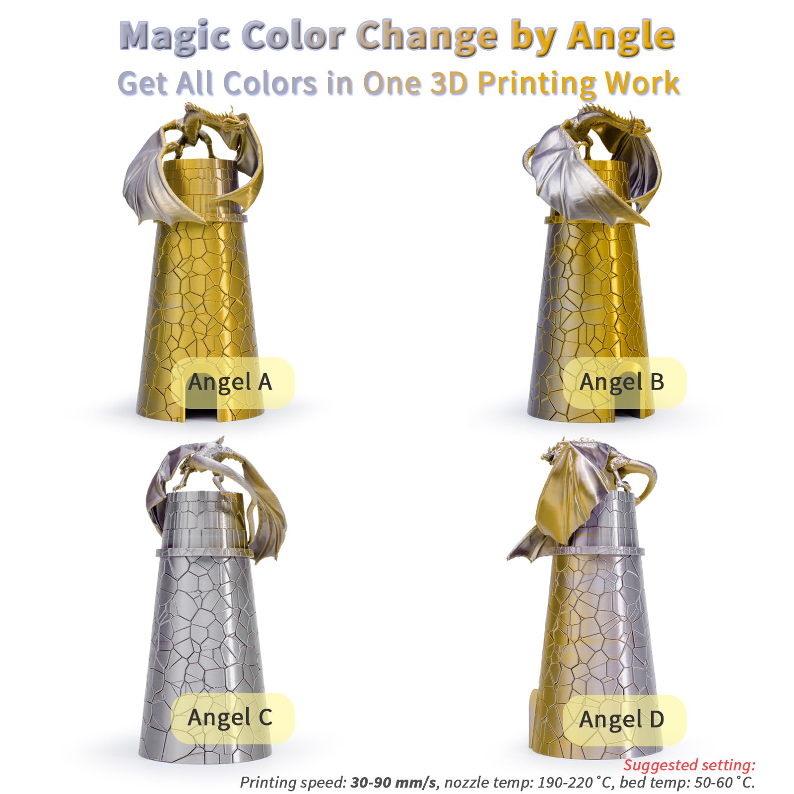 ["【Silk PLA Filament】Dual color 3D filament, multi-color co-extrusion, dual metal colors - gold and silver, fusion shows fantastic visual effects from different angles. With smooth surface, even printing, strong and unbreakable",