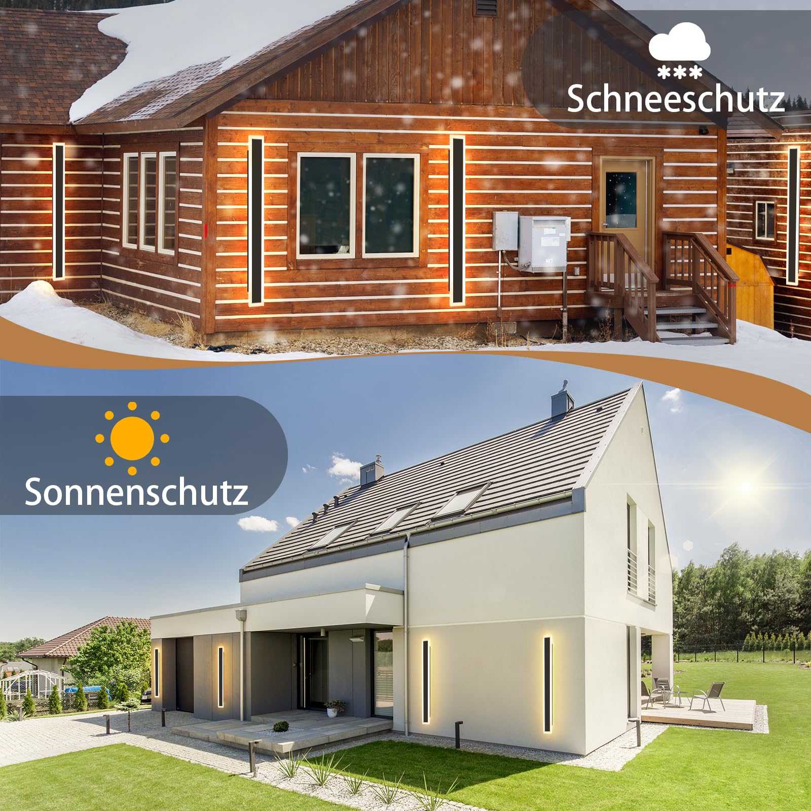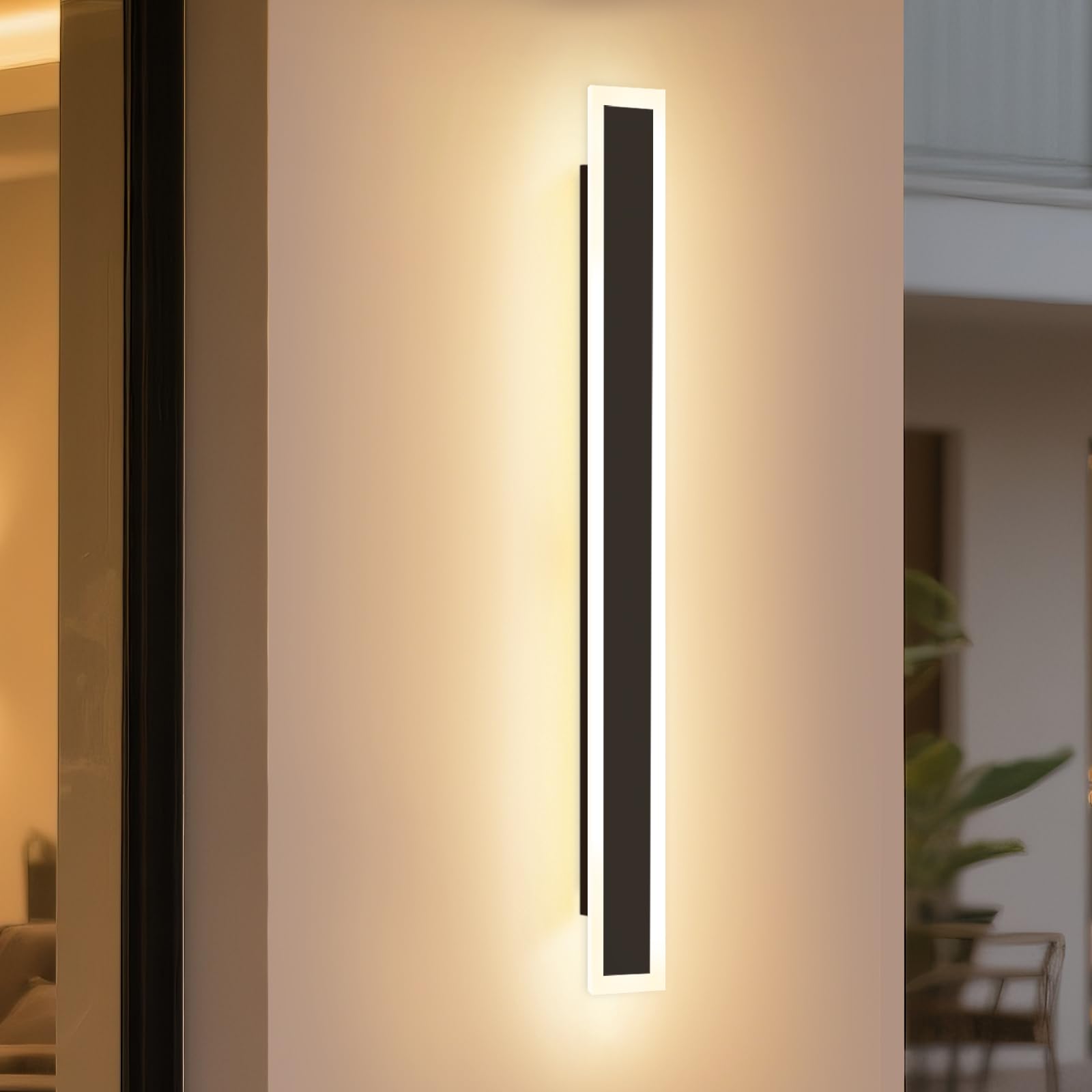 "Modern design: The LED outdoor wall light is made of acrylic and metal, with the metal being matte to prevent rust. Acrylic light is soft and the light transmittance is strong, creating a modern and comfortable atmosphere","Waterproof IP65: The wall light with IP65 protection class is protected against dust and water. It can be used not only indoors (living room, bedroom, hallway, etc.) but also installed on walls in bathrooms and outdoor areas","Details: Size: 100x8x4 cm; Color: Black; Material: Metal & Acrylic; Color temperature: 3000 K; Light source: LED; Waterproofness: IP65; Power: 21 W. Includes mounting accessories","Wide range of applications: Warm white wall lamps are very suitable for lighting and decorating terraces, balconies, gardens, bedrooms, living rooms, kitchens, hallways, bathrooms, stairs, etc. It is ideal for indoor and outdoor use","Warranty service: The ZMH wall light offers a 2-year warranty service, no matter what is wrong with the product, you can contact us"