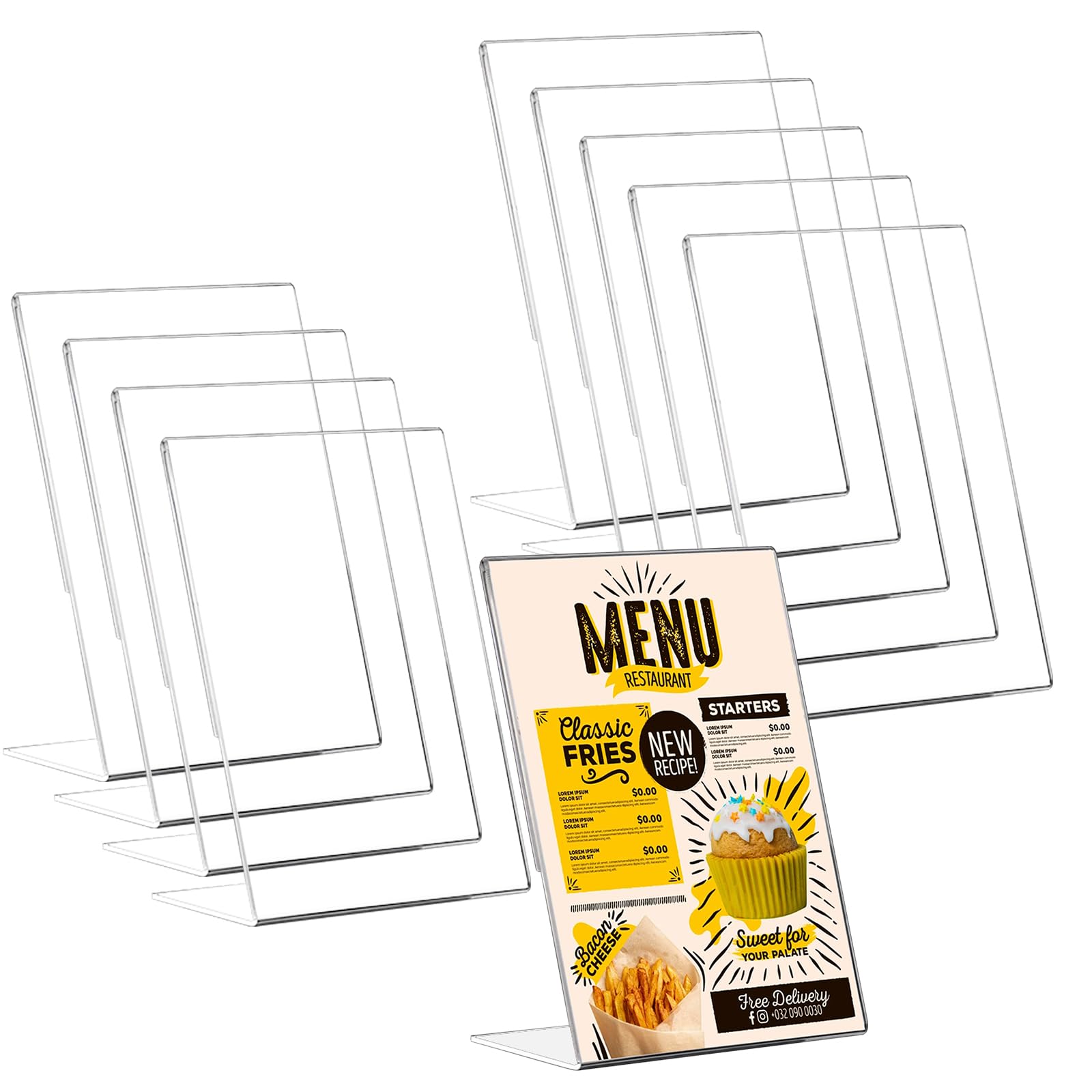 ZOFUN 10 pieces of A4 tabletop acrylic stands, angled tabletop advertising stands/l-stands, transparent A4 stands for photos, cafes, restaurants, exhibitions, offices.