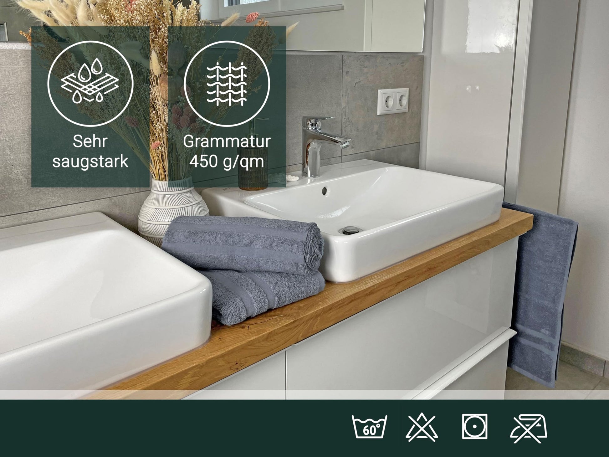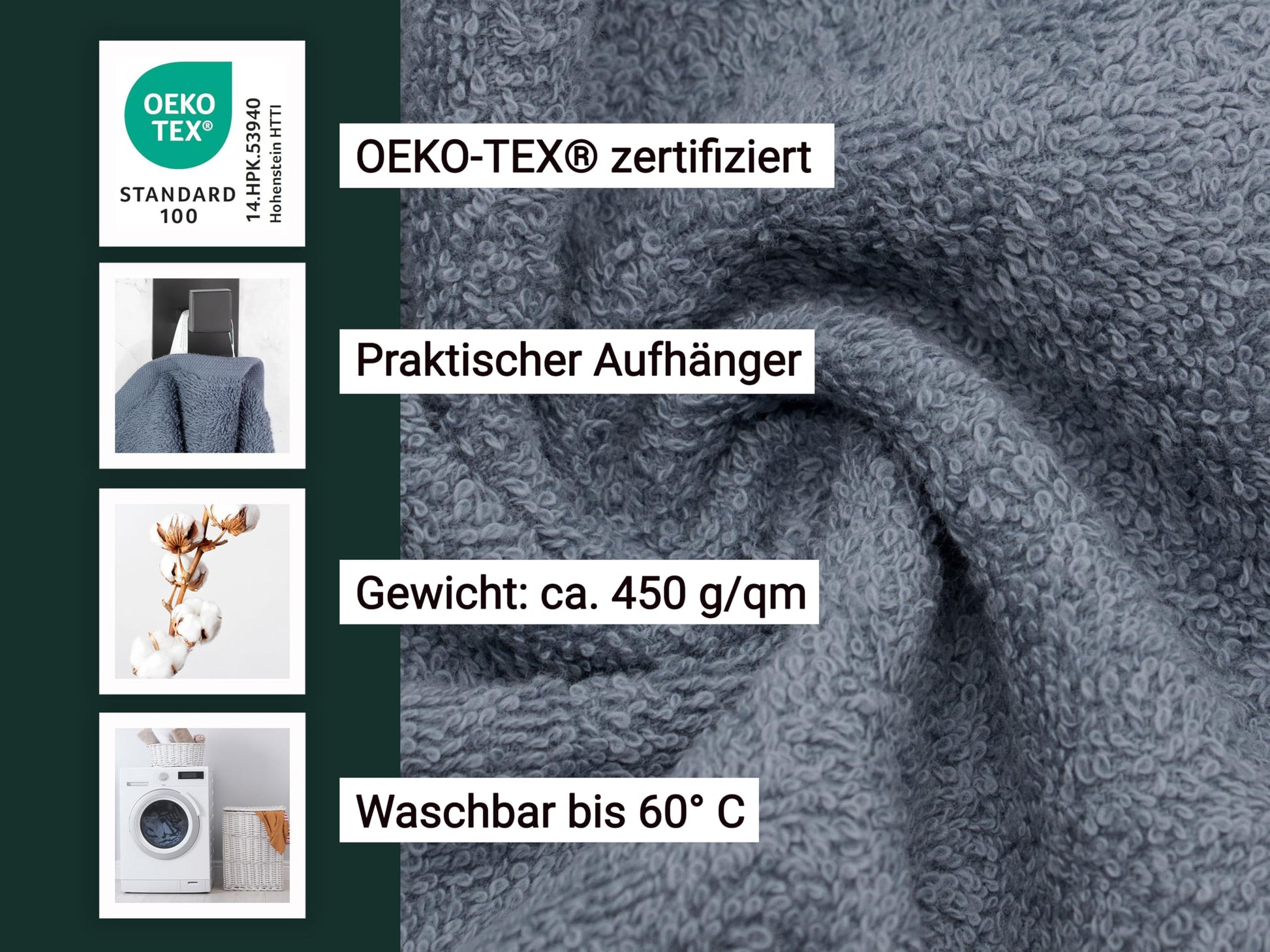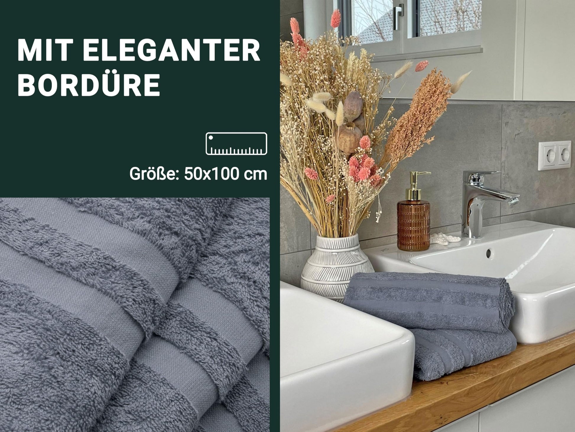 ZOLLNER 10-piece set of towels in 50x100 cm - Fluffy cotton bath towels - with modern striped border - washable up to 60°C - with practical loop for hanging - in grey - hotel quality