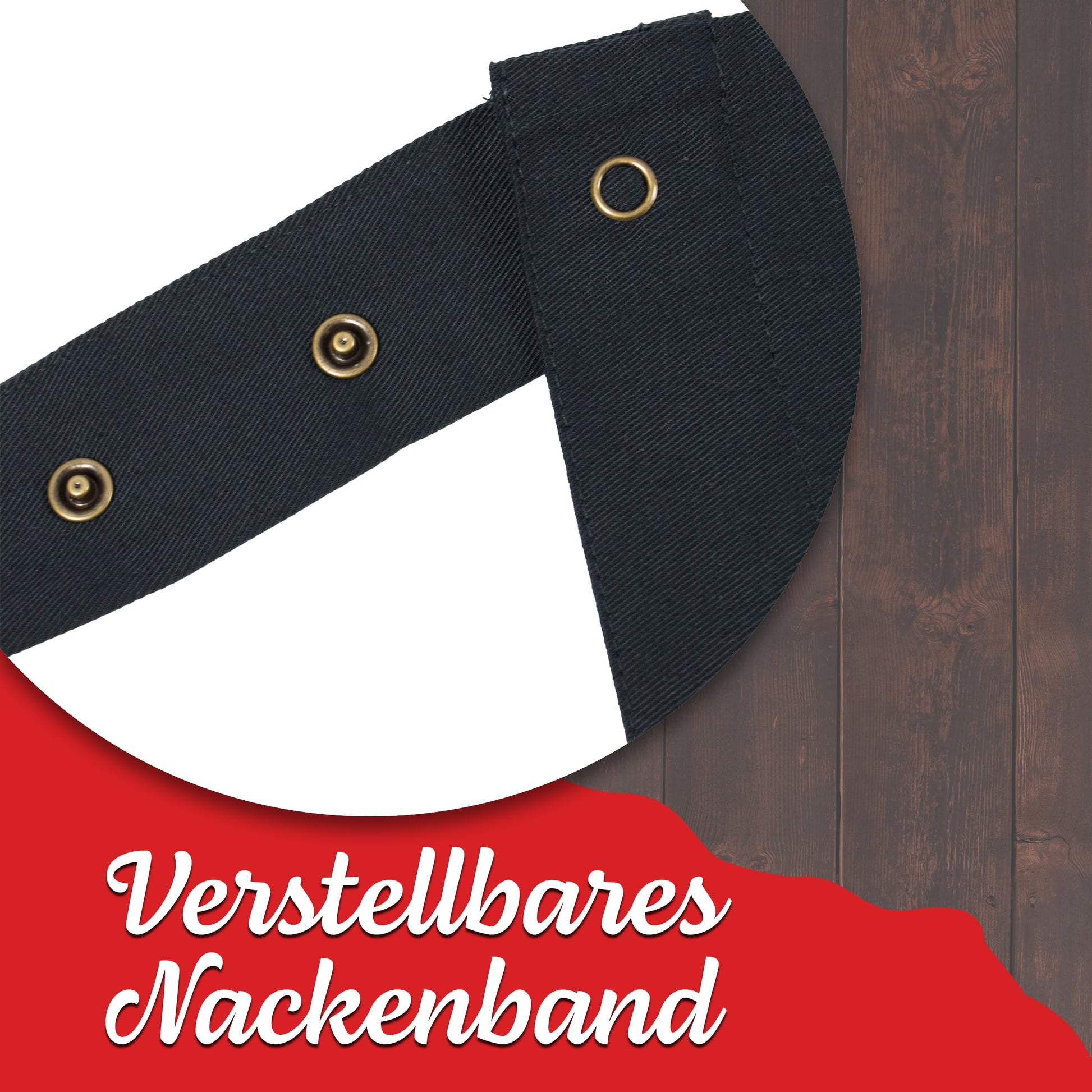 NECKBAND WITH SNAP FASTENERS - The apron features a practical neckband that is adjustable thanks to snap fasteners. This allows the length to be easily adjusted.