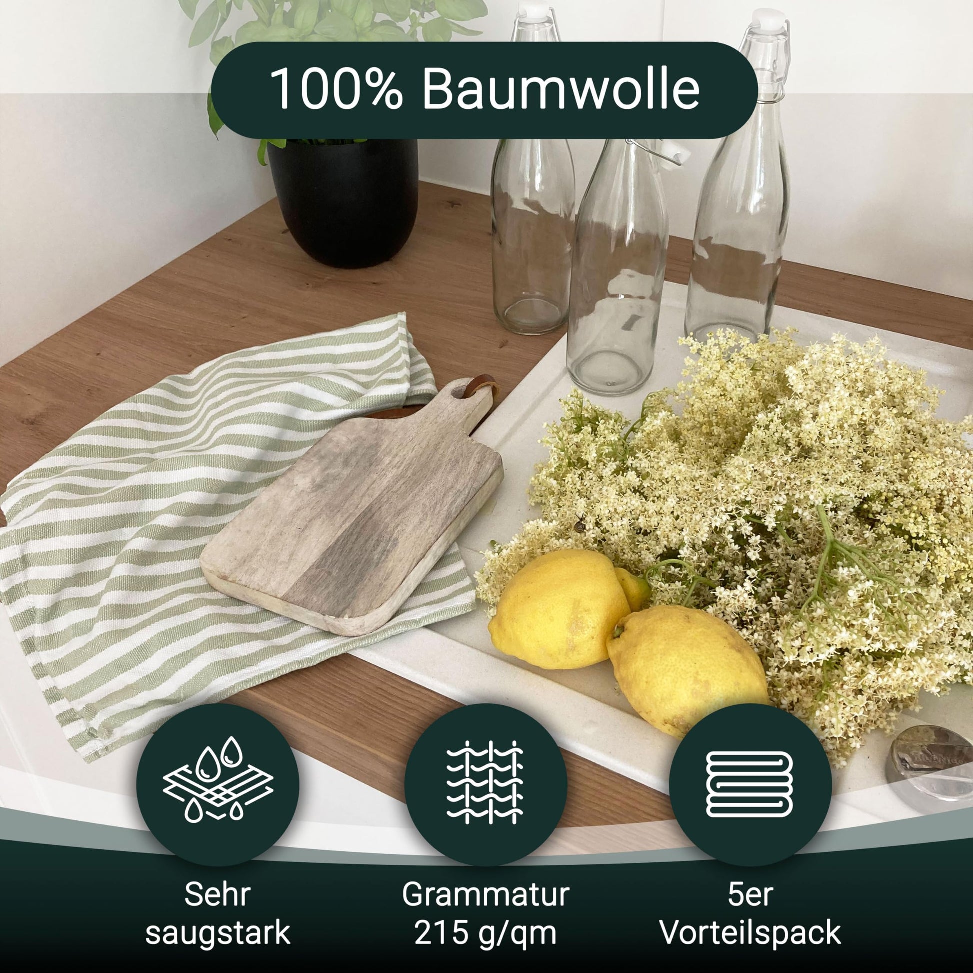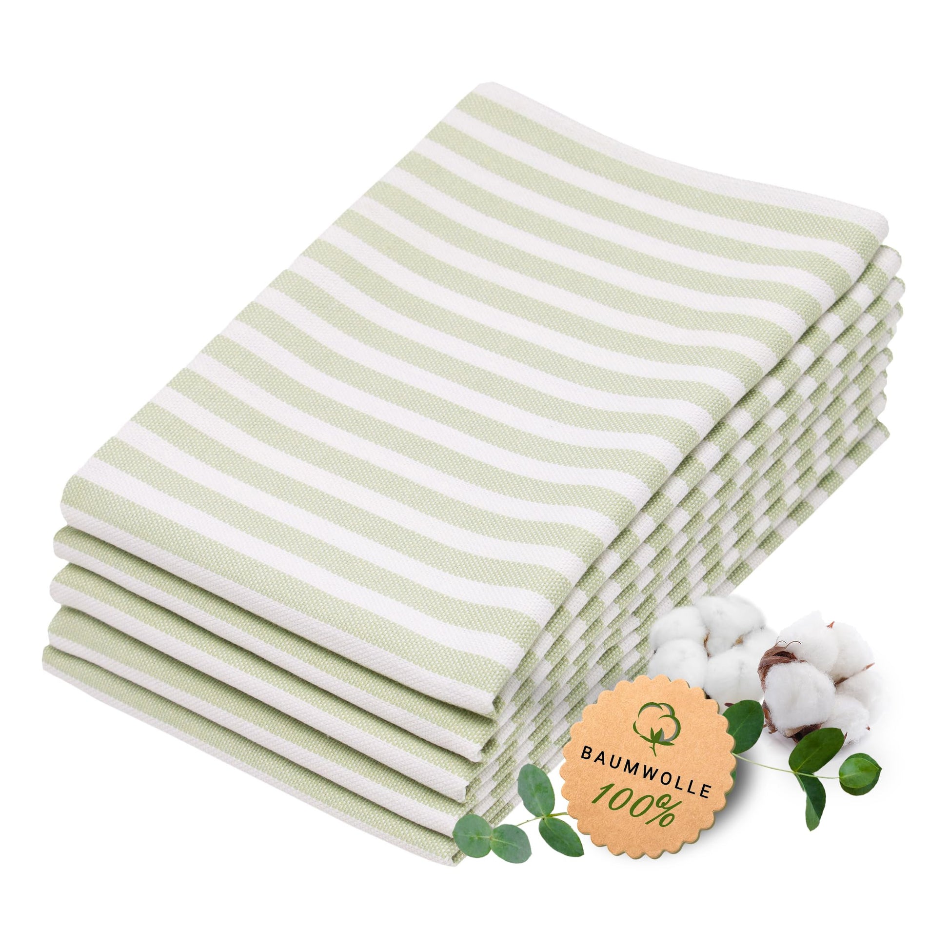 ZOLLNER 5-pack of cotton dish towels, 50x70 cm - absorbent and durable kitchen towels - machine washable up to 60°C - striped in light green - commercial quality - Oeko Tex® certified