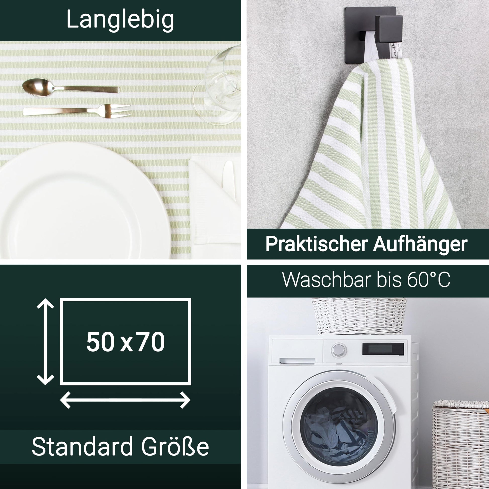 ["VERSATILE USE - Whether for drying dishes, wiping surfaces, as pot holders, for baking a sponge cake roll, or for a quark wrap - dish towels are much more versatile than you might think.","GASTRONOMY QUALITY - ZOLLNER hotel and gastronomy linen is more than just textiles - they are not only a reliable companion in the gastronomy industry, but also a symbol of durability and top performance.","HIGH-QUALITY MATERIAL - The dish towel with a practical hanger is made of 100% cotton with a material weight of approximately 215g/sqm. The cotton cloth impresses with its extremely high absorbency and durability.","EASY CARE - The dish towels are particularly easy to care for, can be washed at 60°C, and are suitable for the dryer - for the best hygiene while cooking.","QUALITY PROMISE - Quality and safety are particularly important to the ZOLLNER brand, which is why the kitchen towels have been tested for harmful substances and certified STANDARD 100 by OEKO-TEX (R), test number 58307 OETI.","WANT MORE? Discover the variety of ZOLLNER! Click on the brand store above to discover all ZOLLNER products, from bathroom, kitchen, and living room textiles to bedroom and household items."]