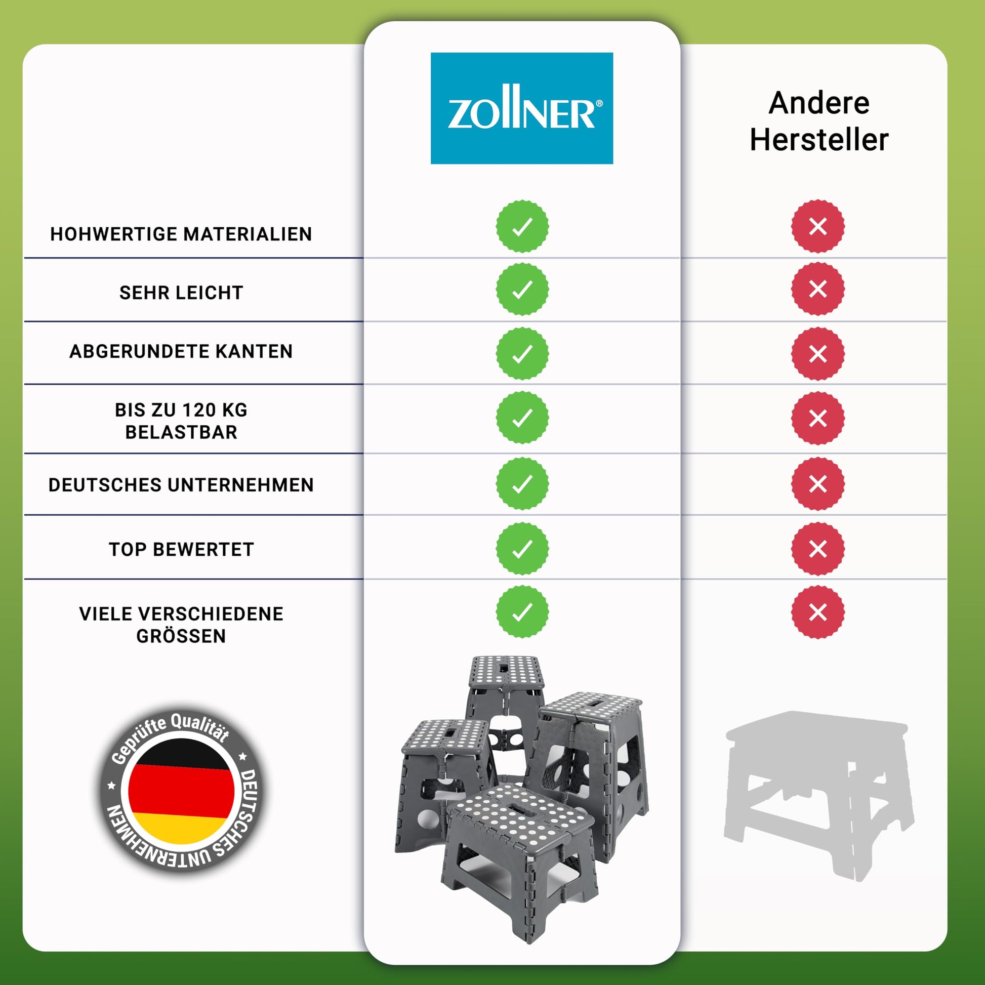 ZOLLNER folding step stool - step stool for children and adults up to 120kg - anti-slip coating - with convenient carrying handle - extremely lightweight - 39 cm high - plastic - anthracite