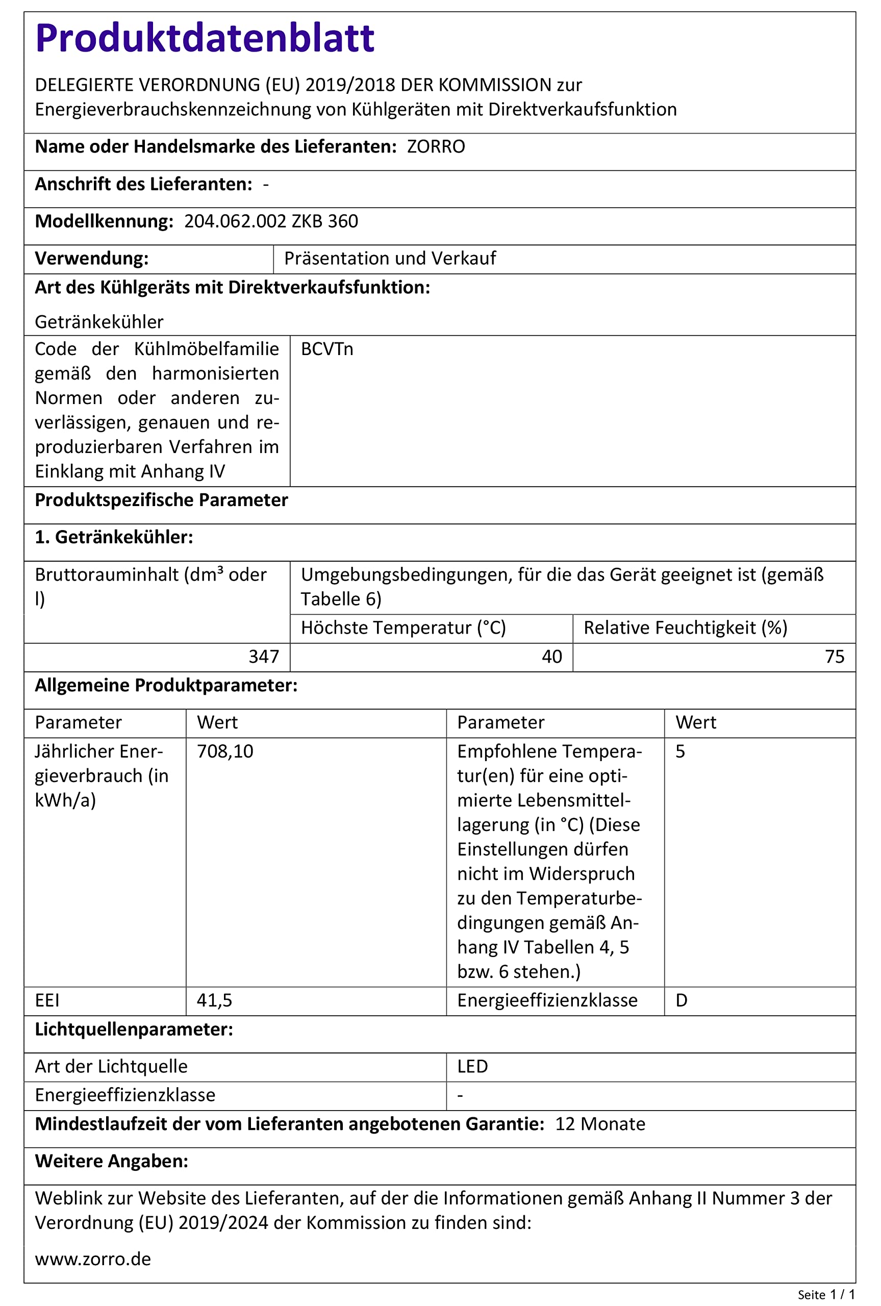 ZORRO beverage cooler ZKB 360 liters black bottle refrigerator refrigerator with glass door Gastro drink cooler