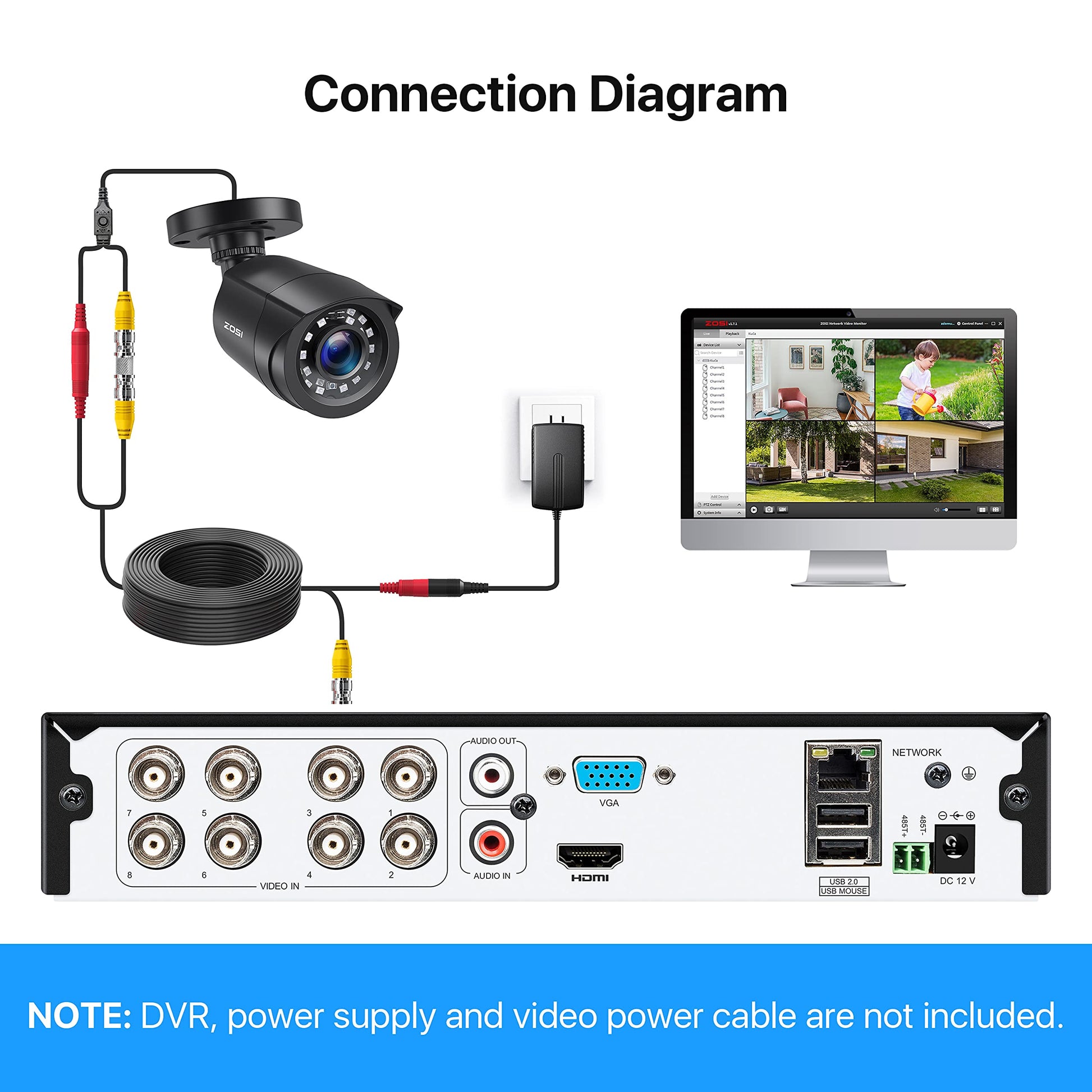 【IP66 Weatherproof】This camera uses high-quality ABS materials that can withstand the toughest outdoor conditions. 3-axis camera mount, cable through bracket for hassle-free use on rainy or snowy days. (Camera power supply and coaxial video cable not included, but required and available separately.)