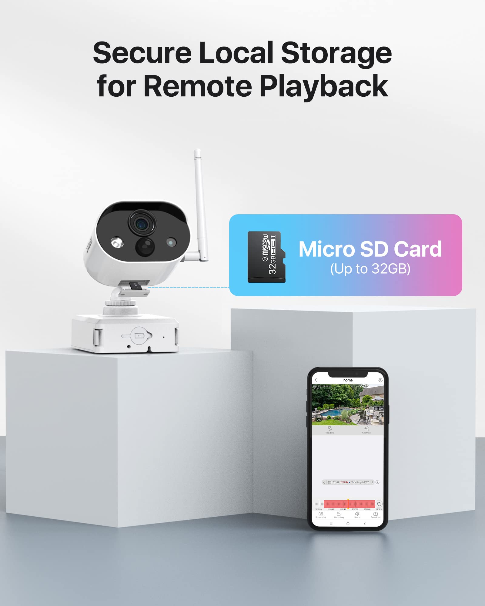 【2K resolution with color night vision】These outdoor wireless surveillance cameras provide a clear and sharp 2K video resolution, ensuring better video quality with more details. The spotlights create color night vision so you can see faces or license plates in color even at night.