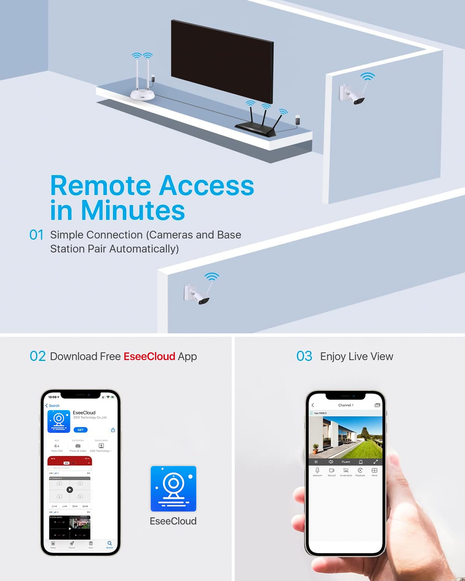 "【100% wire-free surveillance camera system】 - Rechargeable battery and WiFi connection make this system 100% wire-free. No power cables and no wiring required. You can place it anywhere, indoors or outdoors, keeping an eye on your home or business.