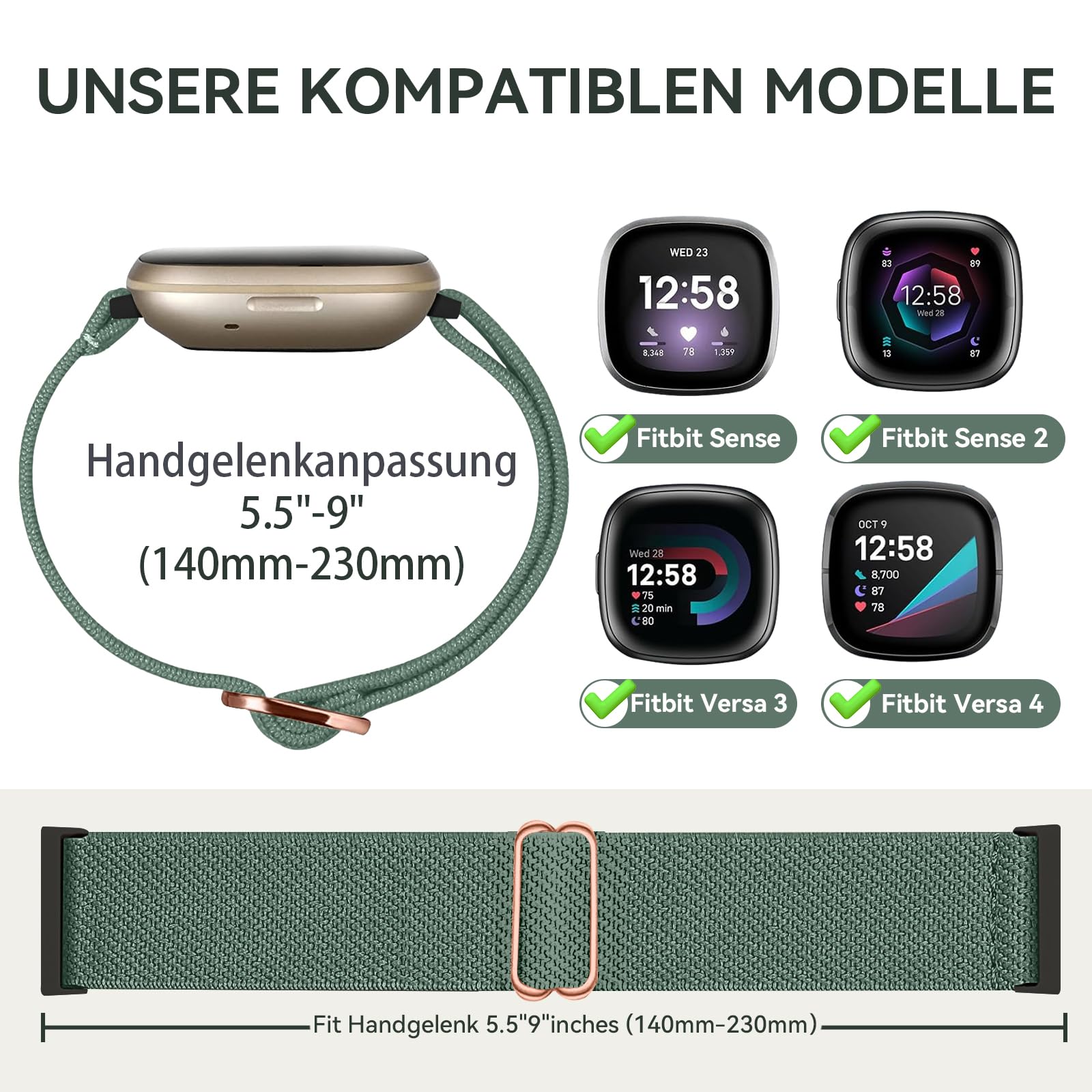["【Compatible Models】: Zspoly adjustable nylon bands are compatible with Fitbit Versa 3/Versa 4/Sense/Sense 2, not for Versa 1, Versa 2, Versa SE, and Versa Lite. (NOTE: Only stretchable bands included, Fitbit watch not included.)",