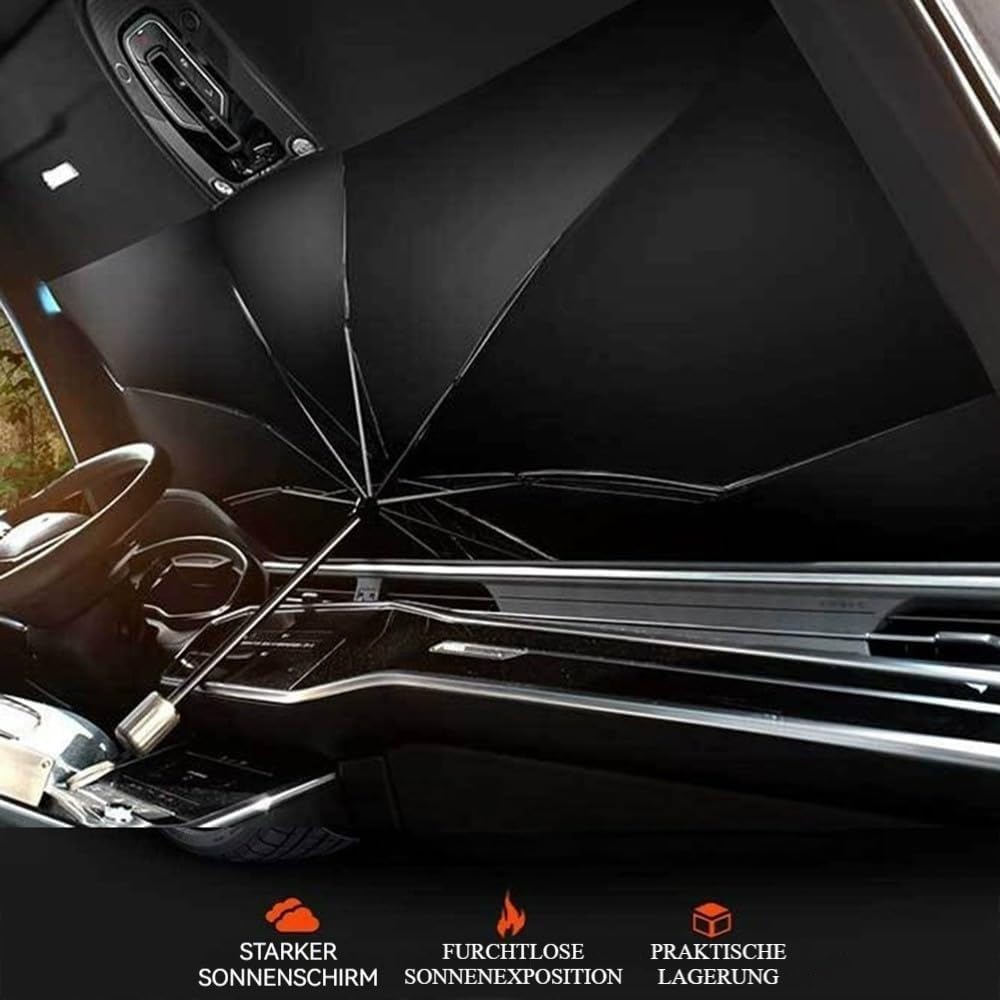 "High-quality material: Car sunshade made of thick and durable titanium silver adhesive and impact-resistant fabric with sun-blocking coating. The high-quality steel ribs make the car sunshade more sturdy and durable.