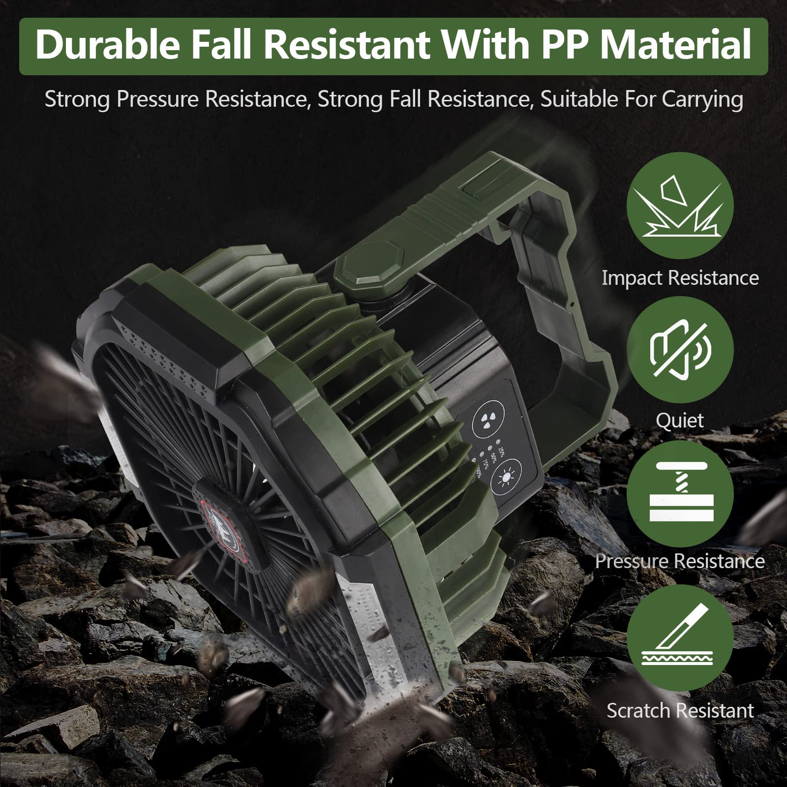 ZWOOS USB Camping Fan, 10400mAh Rechargeable Table Wall/Quiet Fan with 4 Speed Levels Adjustable Table Fan with LED Light for Outdoor Picnics, Fishing